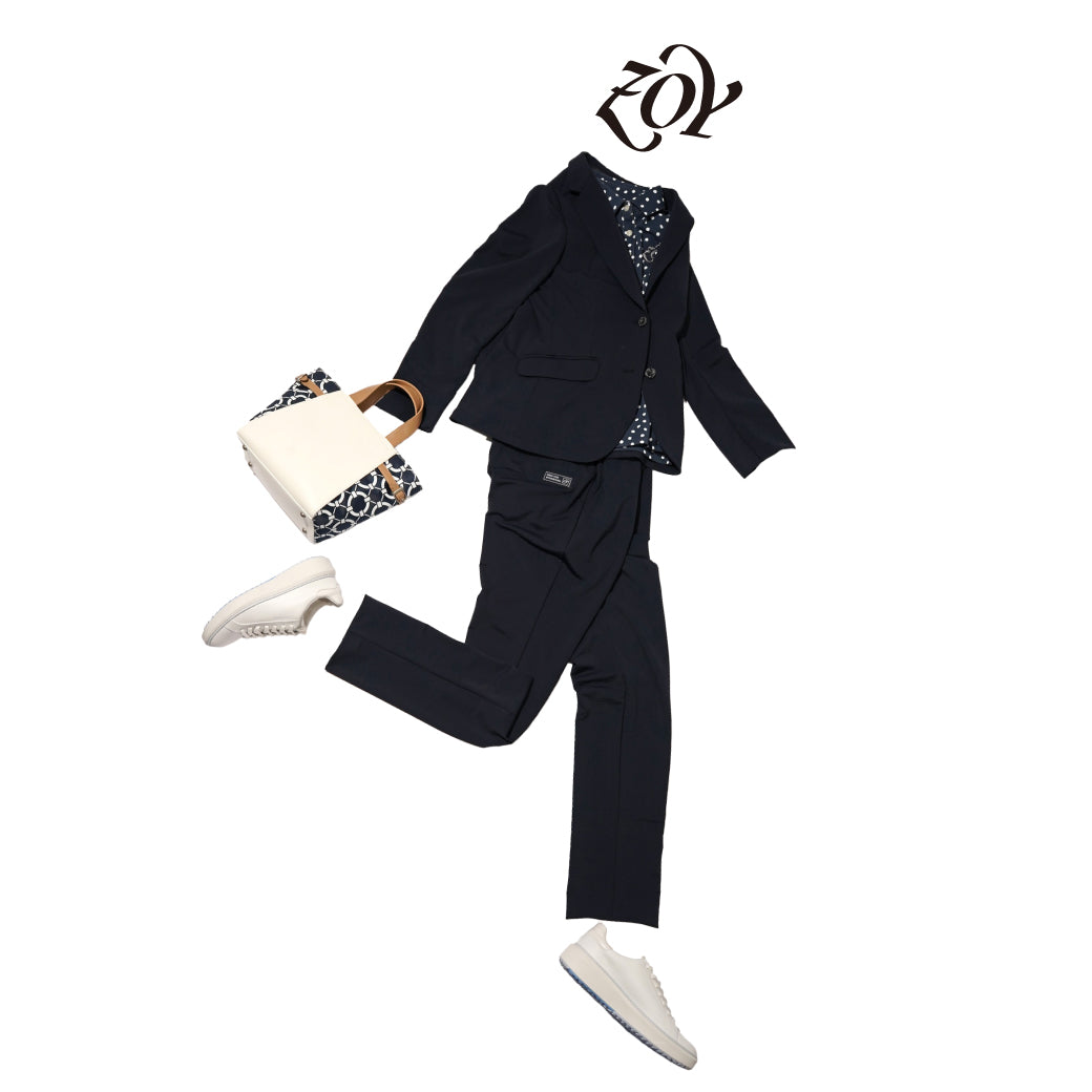【夏から秋へ - 上質という選択/シャドウストライプセットアップ】フィールドで軽やかに動ける上質。静かに品格をまとうスマートアクティブな一着。ZOYが提案する「シンプル×エレガント」‐ 大人のためのゴルフセットアップ。