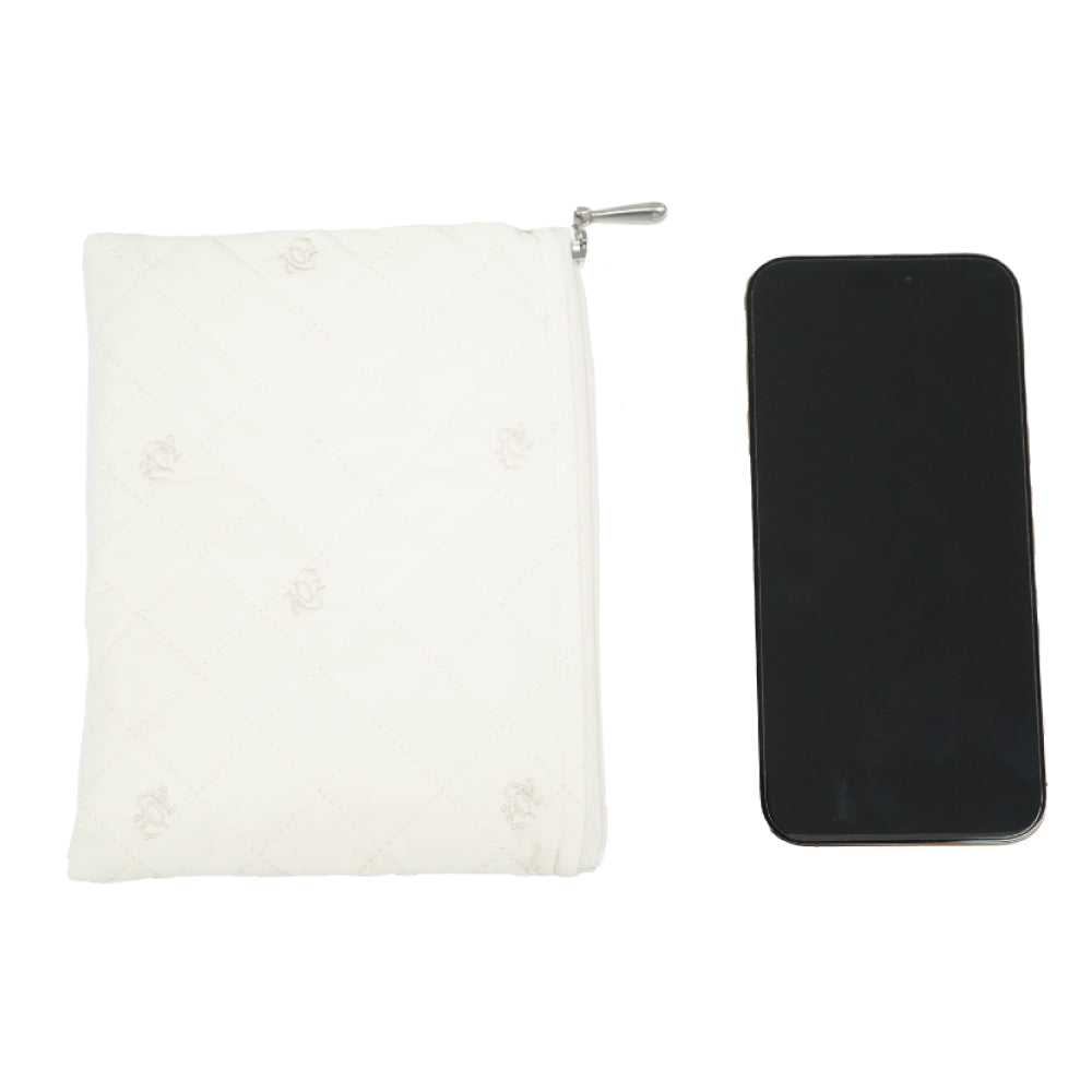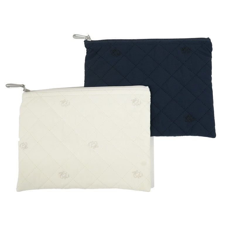 ZOYロゴ刺繍入りの非売品キルト柄ポーチ。