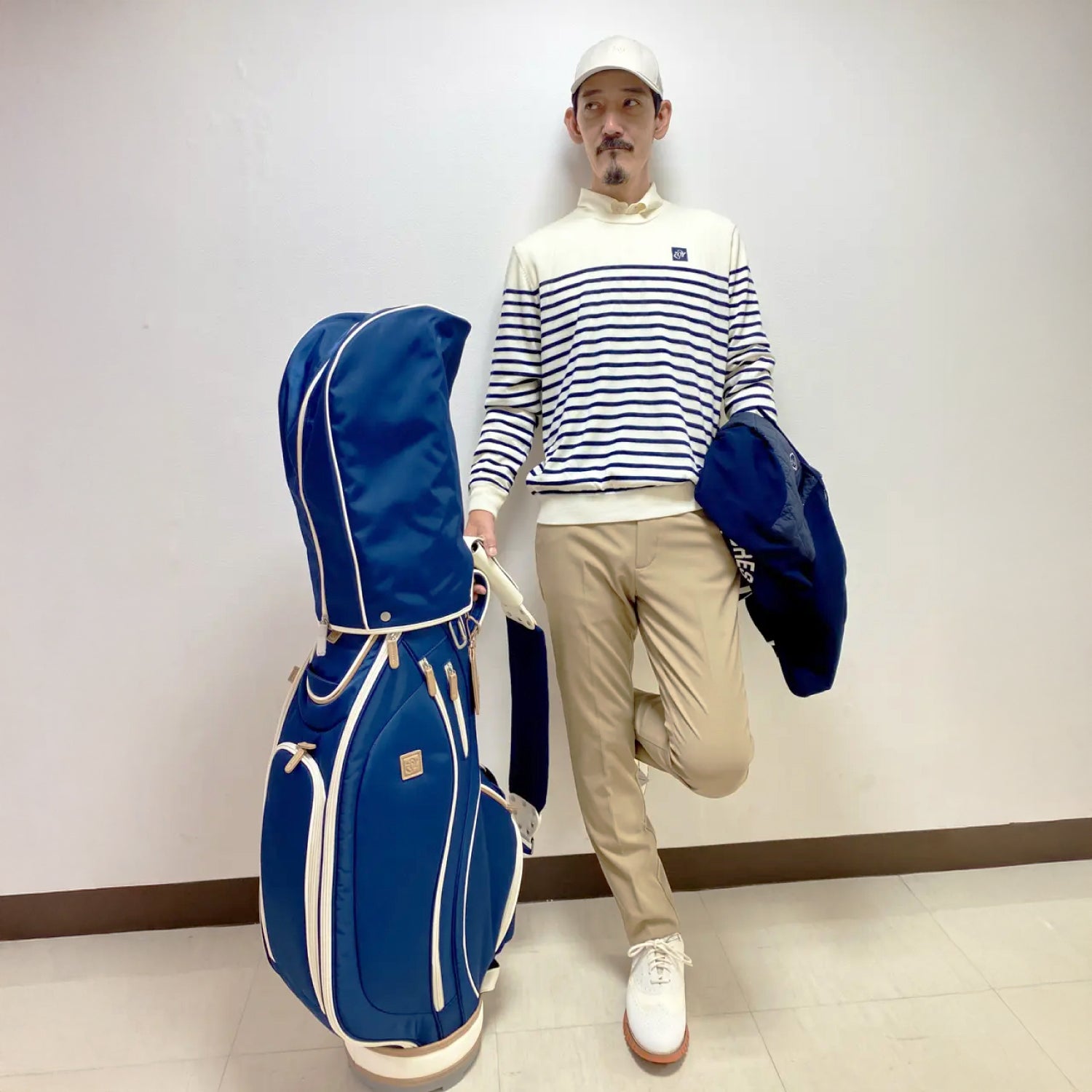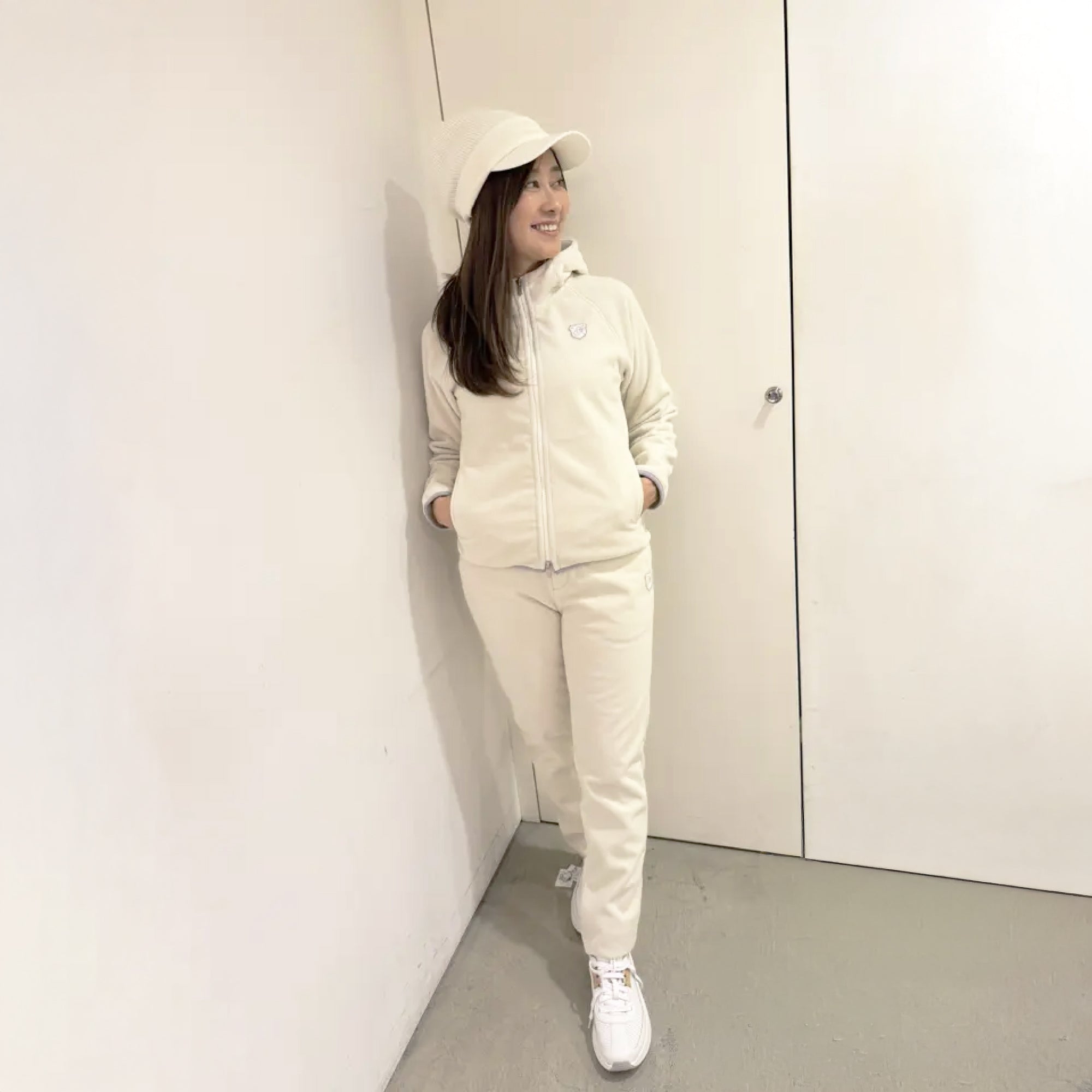 ブロックフリースラミネートのセットアップコーデ。表はフラット、裏はグリッド状のフリースを重ねた、暖かさを逃がさない高機能コンビネーション素材を採用。真冬でも頼れる抜群の保温性を発揮します。寒さを忘れて、優雅な冬のラウンドを楽しみたいあなたにおすすめです。